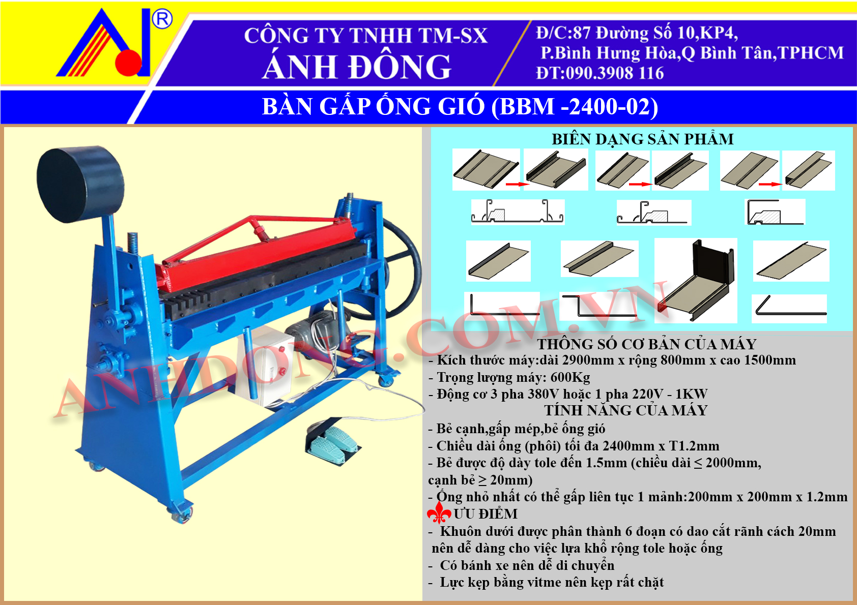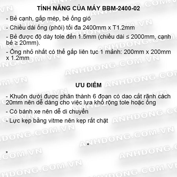 – Bẻ được độ dày tole đến 1.5mm (chiều dài ≤ 2000mm), cạnh bẻ ≥ 20mm)