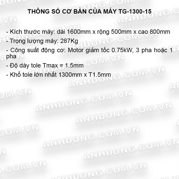 – Khổ tole lớn nhất 1300mm x T1.5mm