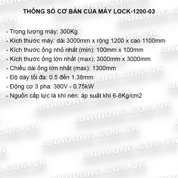 – Kích thước máy: dài 3000mm x rộng 1200 x cao 1100mm